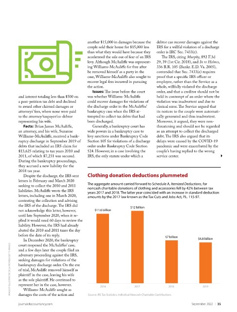 journalofaccountancy.com Source: IRS Tax Statistics, Individual Noncash Charitable Contributions. September 2022 | 35