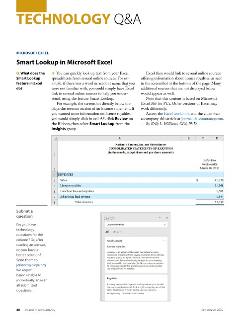 the Ribbon, then select Smart Lookup from the — By Kelly L. Williams, CPA, Ph.D.