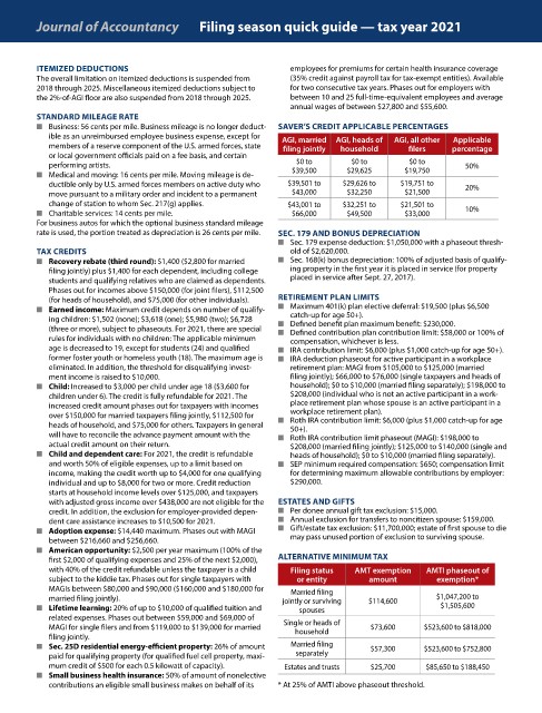 Journal of Accountancy Filing season quick guide — tax year 2021