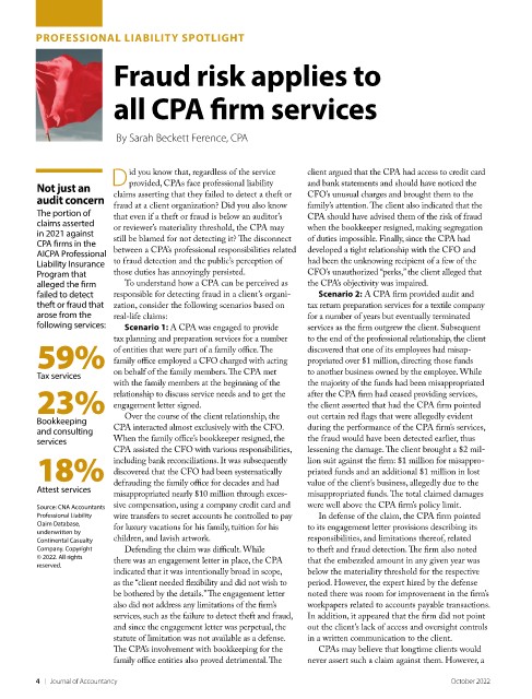 failed to detect responsible for detecting fraud in a client’s organi- Scenario 2: A CPA firm provided audit and