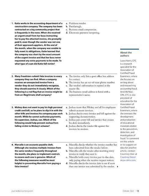 1. Katie works in the accounting department of a a. Fictitious vendor.
