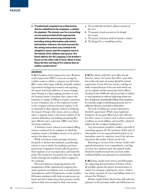 the employer. 3. (b) Joshua checks every invoice and bill against