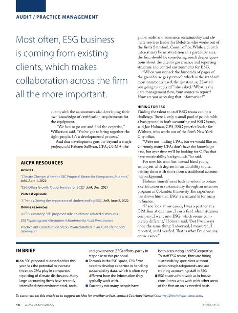 ESG Reporting and Attestation: A Roadmap for Audit Practitioners pletely different,” Holman said. “But I’ve always