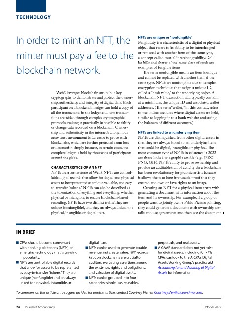 with nonfungible tokens (NFTs), an ■ NFTs can be used to generate taxable ■ A GAAP standard does not yet exist