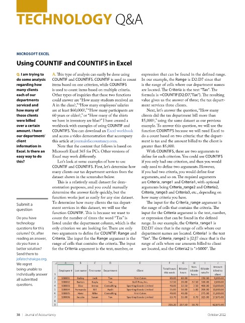 Submit a To determine how many clients the tax depart- The input for the Criteria_range argument is