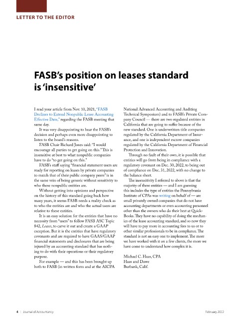 both to FASB (in written form and at the AICPA Burbank, Calif.