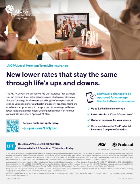 The AICPA Level Premium Term (LPT) Life Insurance Plan can help NEW! More chances to be