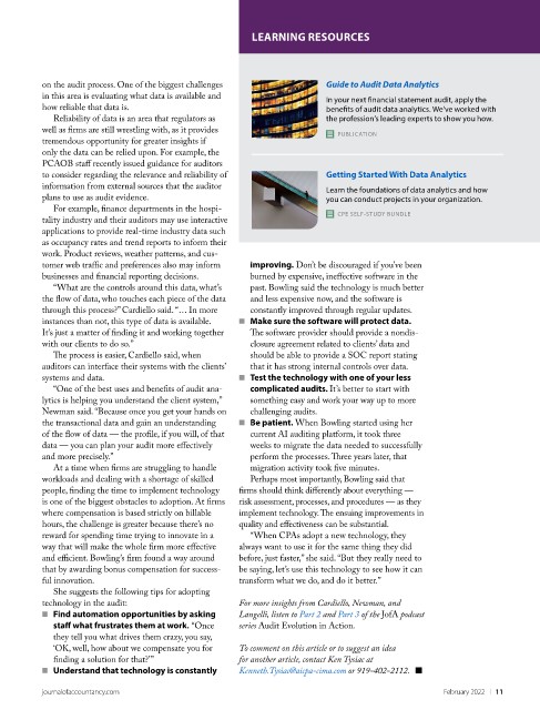 “One of the best uses and benefits of audit ana- complicated audits. It’s better to start with