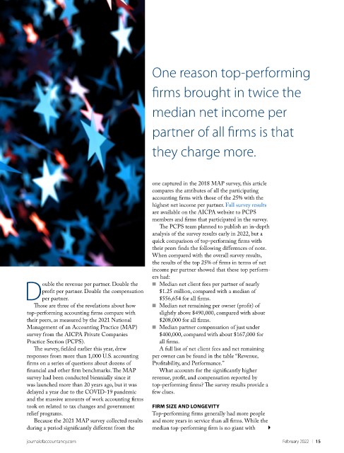 Management of an Accounting Practice (MAP) ■ Median partner compensation of just under