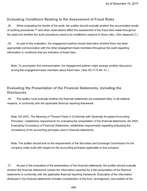 of auditing procedures 17 and other observations affect the assessment of the fraud risks made throughout
