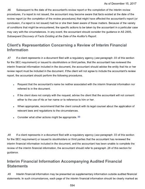 .46 Subsequent to the date of the accountant's review report or the completion of the interim review