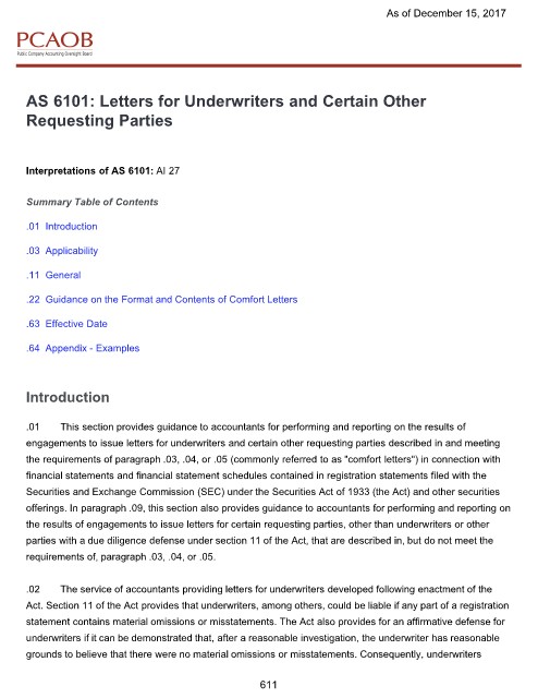 .02 The service of accountants providing letters for underwriters developed following enactment of the