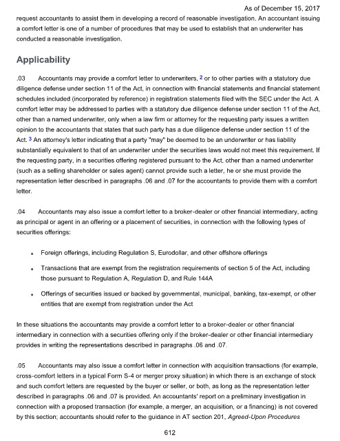 .03 Accountants may provide a comfort letter to underwriters, or to other parties with a statutory due