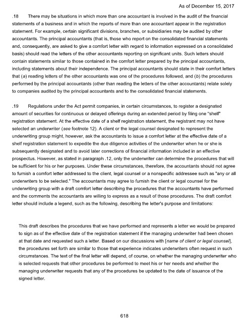 underwriting group with a draft comfort letter describing the procedures that the accountants have performed