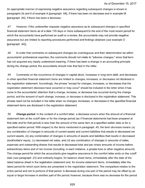 .47 However, if the underwriter requests negative assurance as to subsequent changes in specified