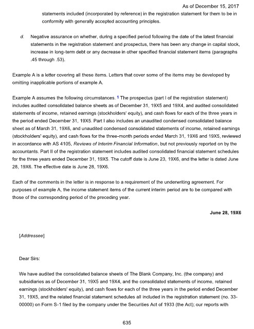 d. Negative assurance on whether, during a specified period following the date of the latest financial