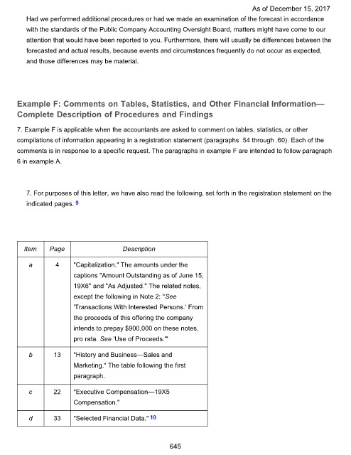 7. Example F is applicable when the accountants are asked to comment on tables, statistics, or other
