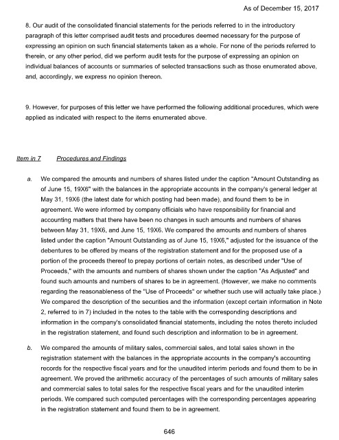 paragraph of this letter comprised audit tests and procedures deemed necessary for the purpose of