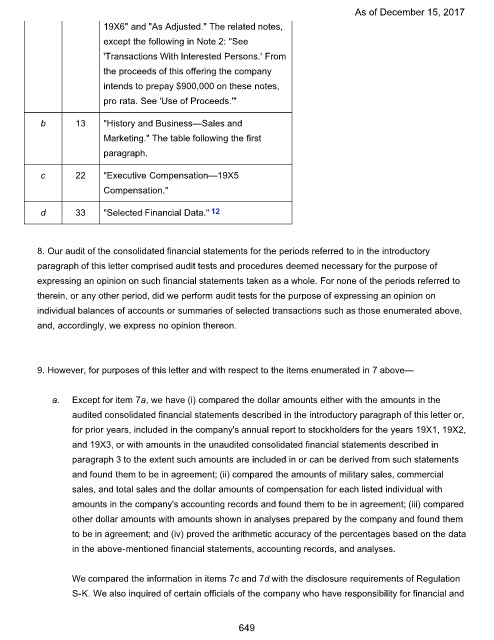 paragraph of this letter comprised audit tests and procedures deemed necessary for the purpose of