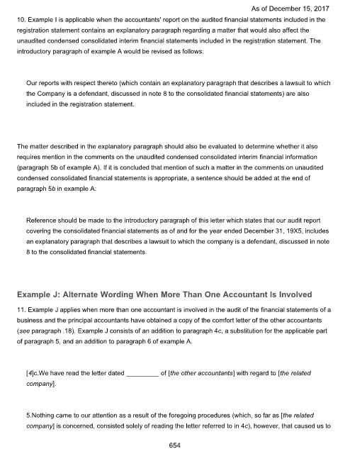 10. Example I is applicable when the accountants' report on the audited financial statements included in the