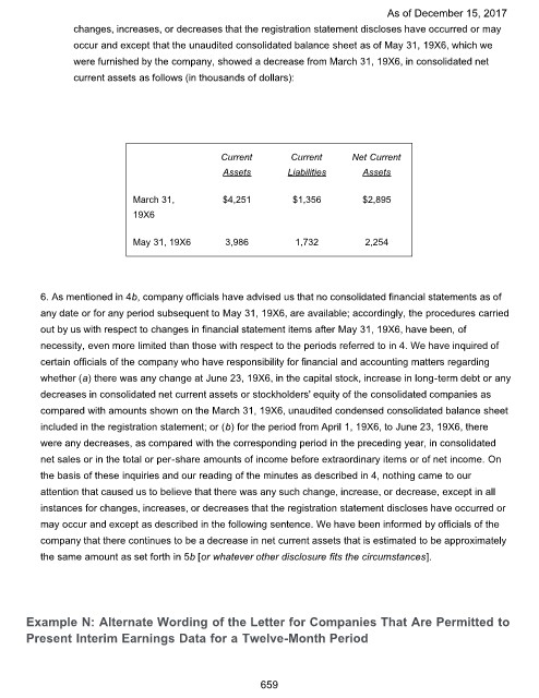 out by us with respect to changes in financial statement items after May 31, 19X6, have been, of
