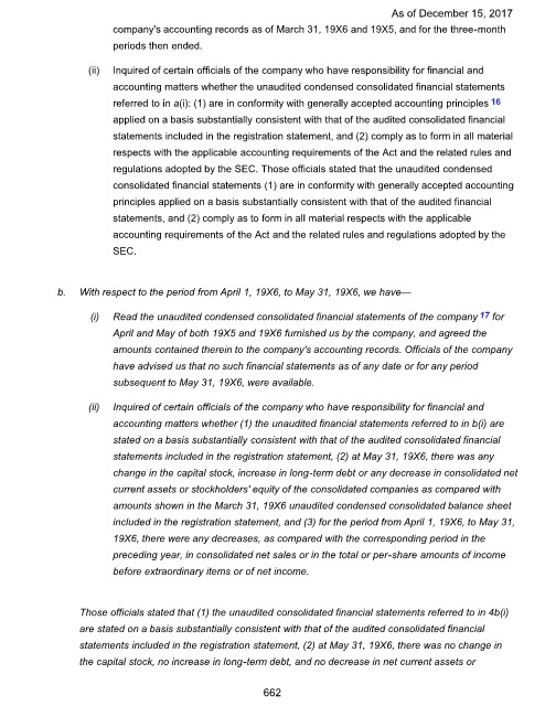 accounting matters whether (1) the unaudited financial statements referred to in b(i) are