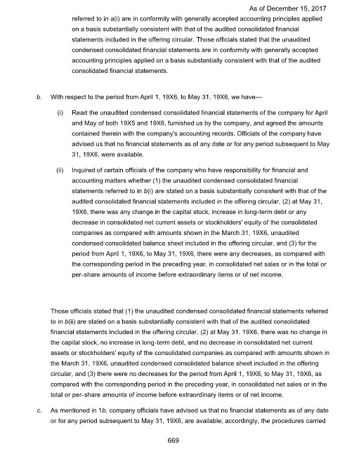 financial statements included in the offering circular, (2) at May 31, 19X6, there was no change in