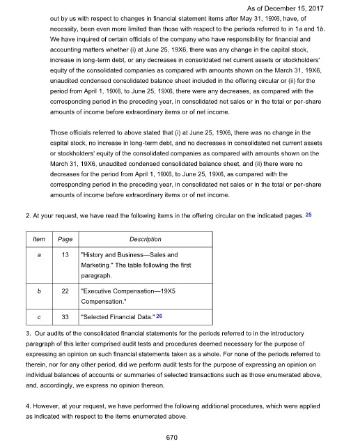 2. At your request, we have read the following items in the offering circular on the indicated pages. 25