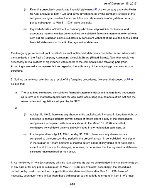 6. Nothing came to our attention as a result of the foregoing procedures, however, that caused us 34 to