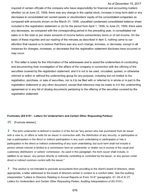Footnotes (AS 6101 - Letters for Underwriters and Certain Other Requesting Parties):