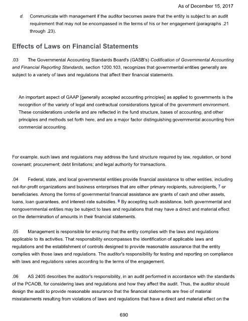 of the PCAOB, for considering laws and regulations and how they affect the audit. Thus, the auditor should
