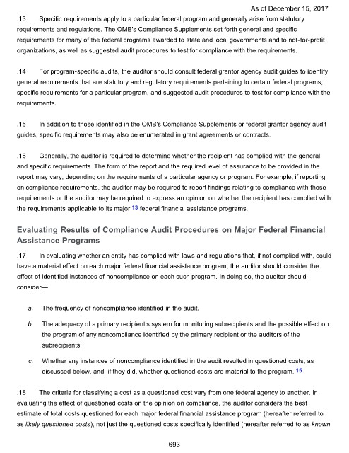 effect of identified instances of noncompliance on each such program. In doing so, the auditor should