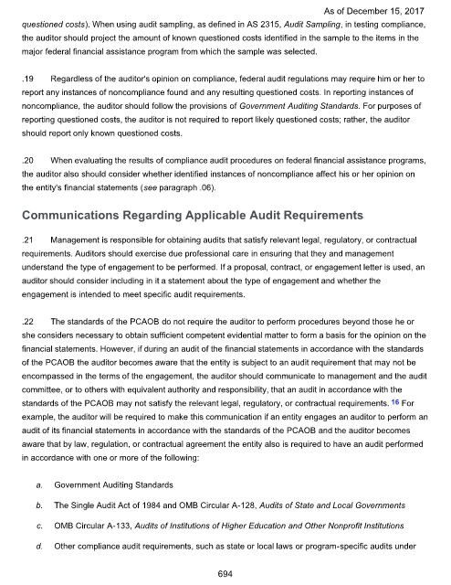questioned costs). When using audit sampling, as defined in AS 2315, Audit Sampling, in testing compliance,