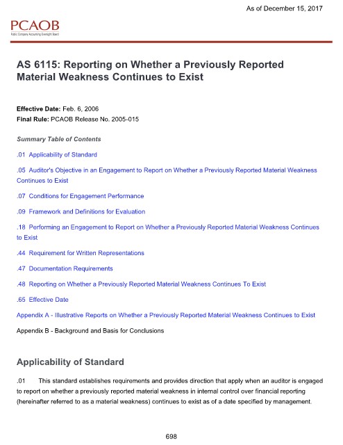 .18 Performing an Engagement to Report on Whether a Previously Reported Material Weakness Continues