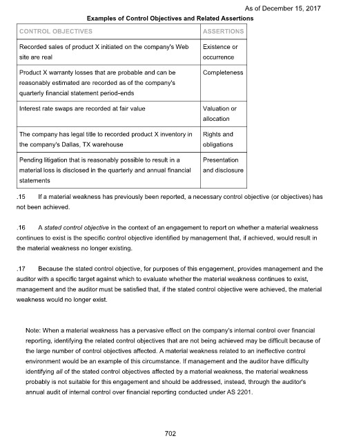 .17 Because the stated control objective, for purposes of this engagement, provides management and the