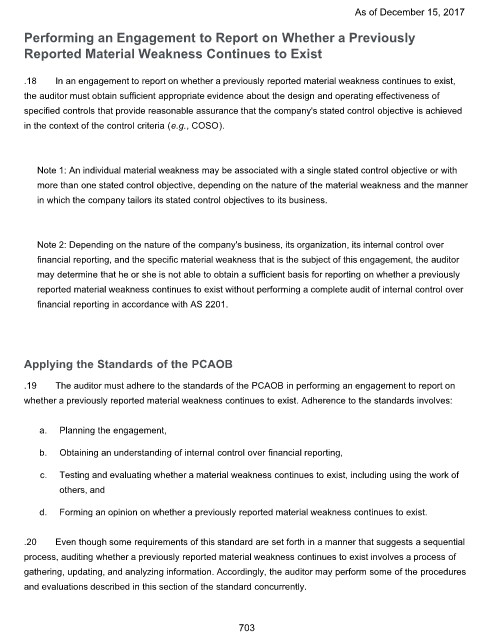 .18 In an engagement to report on whether a previously reported material weakness continues to exist,
