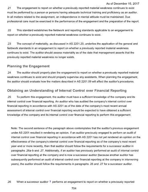 .21 The engagement to report on whether a previously reported material weakness continues to exist