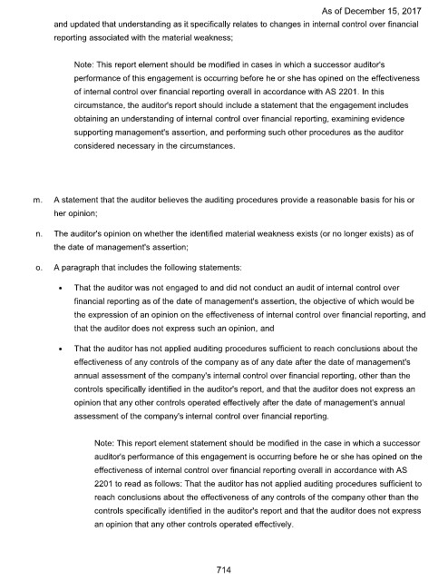 n. The auditor's opinion on whether the identified material weakness exists (or no longer exists) as of