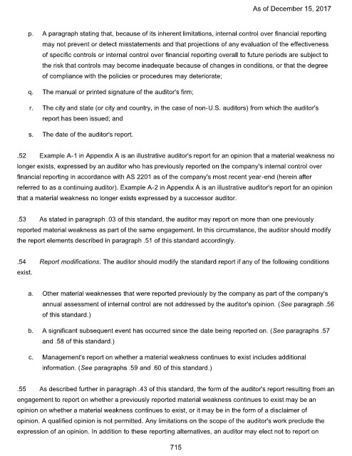 .52 Example A-1 in Appendix A is an illustrative auditor's report for an opinion that a material weakness no