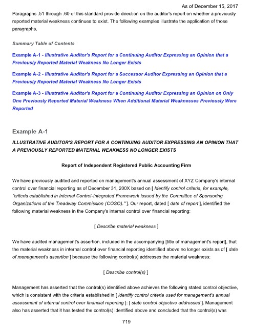 reported material weakness continues to exist. The following examples illustrate the application of those