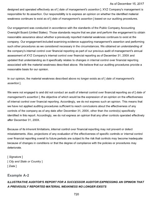 designed and operated effectively as of [ date of management's assertion ]. XYZ Company's management is
