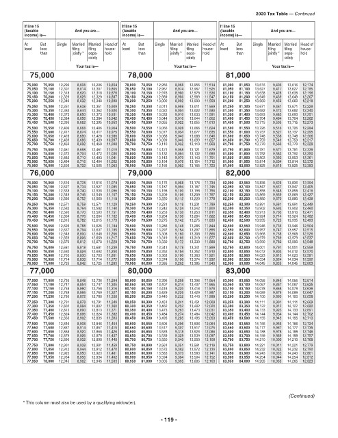 76,950 77,000 12,725 8,842 12,725 11,283 79,950 80,000 13,385 9,202 13,385 11,943 82,950 83,000 14,045 9,835 14,045 12,603