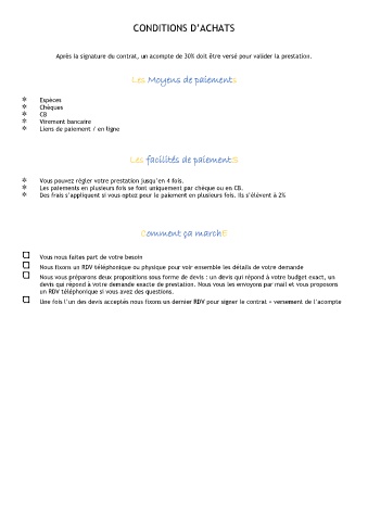 Après la signature du contrat, un acompte de 30% doit être versé pour valider la prestation.