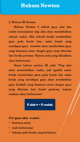 Bunyi hukum newton III yaitu “Tiap aksi