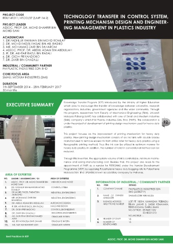 EXECUTIVE SUMMARY Knowledge Transfer Program (KTP) introduced by the Ministry of Higher Education