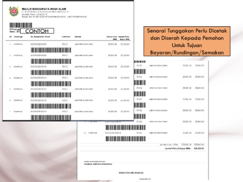 CONTOH Senarai Tunggakan Perlu Dicetak dan Diserah Kepada Pemohon Untuk Tujuan Bayaran/Rundingan/Semakan