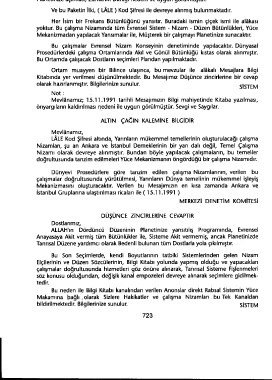 Mevlanamiz; 15.11.1991 tarihli Mesajimizin Bilgi mahiyetinde Kitaba yazilmasi,