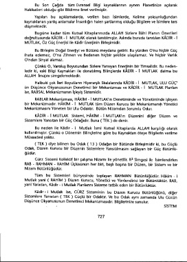 yani Yaradan, Kadir - i Mutlak Planlarini Sisteme tatbik eden bir Bütünlüktür.