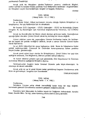 Sizin ile seneler önce yapmis oldugumuz Özel sohbetler sirasinda Size verdigimiz