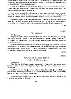 Sorulan her soruda Yüce Mekanizmanin teker teker verecegi Bilgiler yaninda,